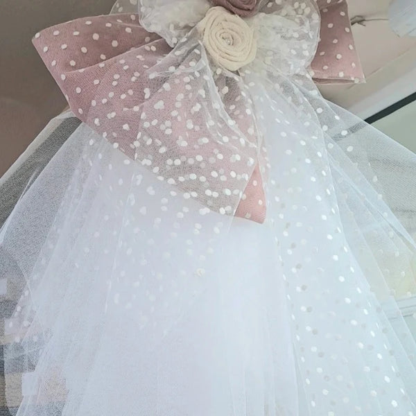 Stunning Girl lambada with white toul and dusty pink bow and flowers!